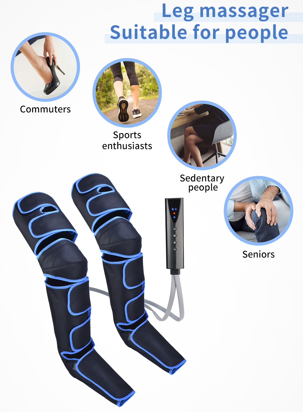 Dieses pneumatische Fußmassagegerät ist ideal zur Entspannung der Beine und für viele Menschen geeignet. Pendler, die täglich hohe Absätze tragen, können damit effektiv Müdigkeit und Schwellungen in den Beinen lindern. Sportler profitieren nach dem Training von der Linderung von Muskelkater und der Förderung der Regeneration. Menschen, die lange sitzen und deren Beine schlecht durchblutet sind, können ihren Zustand verbessern und Beschwerden lindern. Auch ältere Menschen, die häufig unter Gelenkschmerzen leiden, können die Massage-, Wärme- und anderen Funktionen nutzen, um diese zu lindern. Das Gerät kombiniert verschiedene Massagetechniken wie Luftdruck und Vibration für eine umfassende Beinmassage und ist einfach zu bedienen – für ein professionelles Fußmassageerlebnis ganz bequem von zu Hause aus.